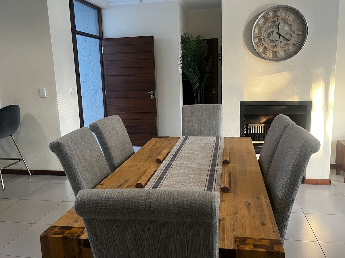 This up market unit is perfect for a home away from home. Lock up and go, secure safe suburb , set in beautiful garden. Easy access to Highways. Comfortable King size bed for great nights sleep. Suitable for short or long term rental, staycation, celebration or business trip. Serviced daily except Sundays and public holidays! Unit comes with one parking bay. Lights, TV and WiFi available during load shedding! Property has a borehole with purified water. Unit has an aircon.
