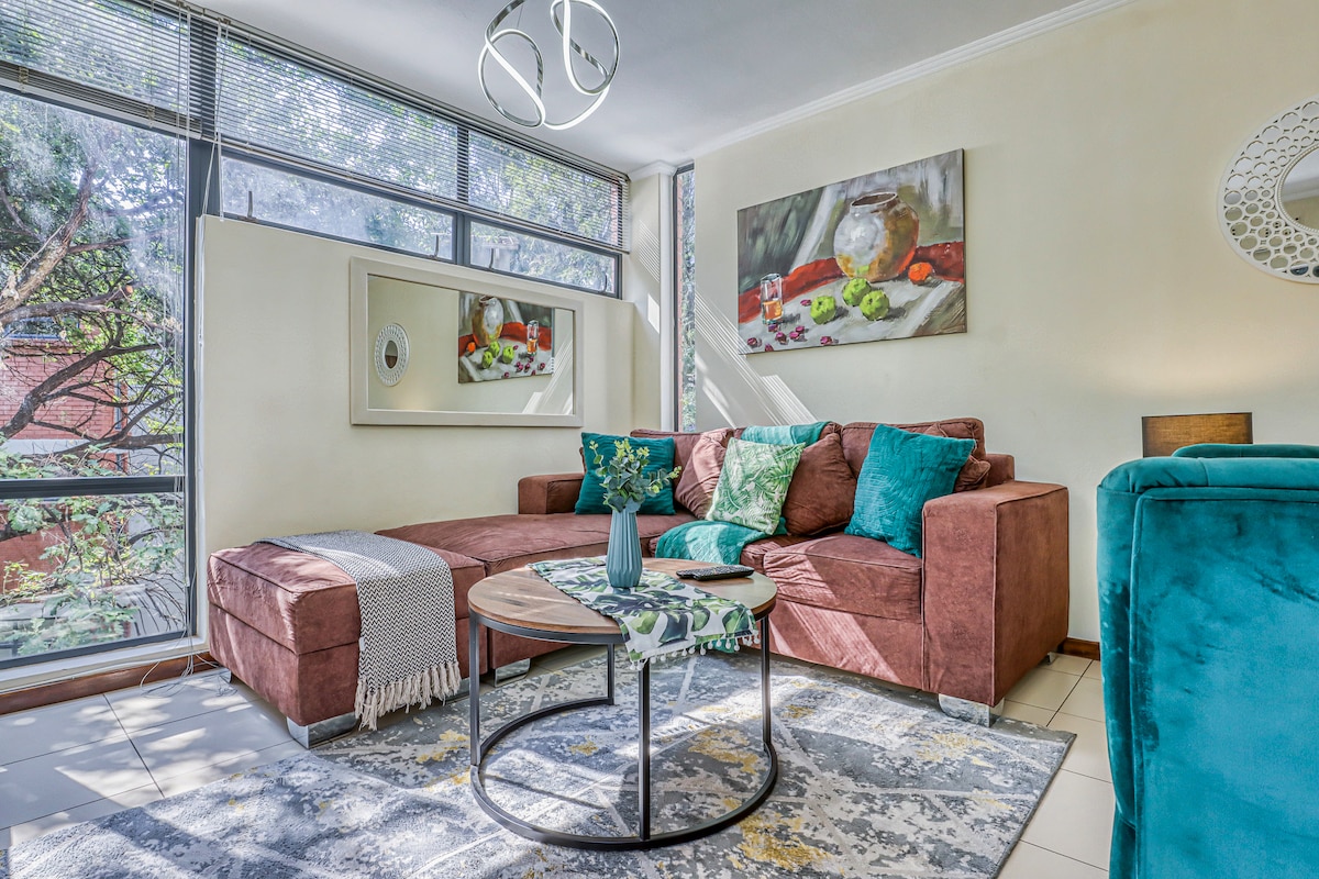 * Watch the majestic Johannesburg North Sunset * Go for a round of golf * Challenge friends for a game of tennis * Take a walk on the golf course alone or with the kids followed by drinks & a steak at the club house. * Treat the kids to a full play area * Cool down and braai in the various communal pools, all this without leaving the estate! * Flat also perfect for working from home with a compact table that doubles up as a dining table. * Doctors, restaurants, malls, etc. close by