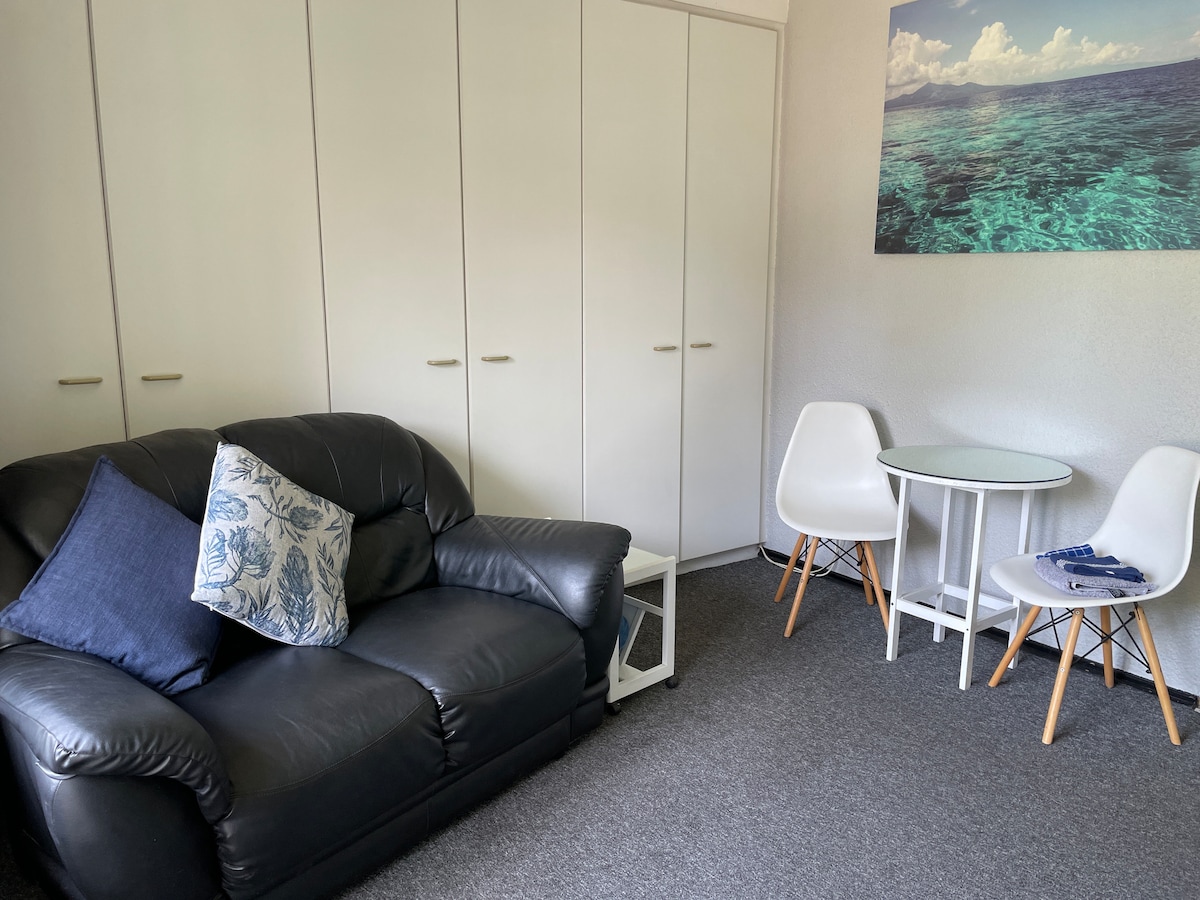 This duplex unit consists of a queen size bed and on-suite bathroom on the 1st floor, with a full kitchen downstairs. It has a beautiful private garden with a patio, breakfast-table, and braai facility. All covered with high-speed uncapped fibre wi-fi. The kitchen has all the basic appliances and cutlery for self-catering as well as a dining table. The bedroom is airconditioned with a TV-cast facility. DSTV can be casted on request. The bathroom has a shower with all the basic toiletries.