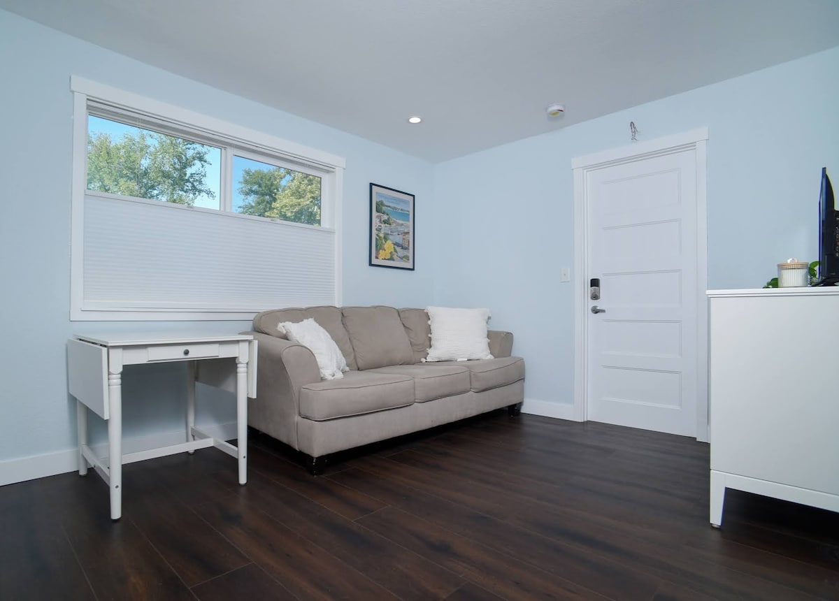Thoughtfully designed 311 square feet backyard studio Steps to Gunther's Ice Cream-Food&WineMag’s Best in CA & Pangaea Bier Cafe-multiple Burger Battle winner Large walk in tiled shower with seat View of the Backyard garden & patio which is available for use where there is space for outdoor dining/visiting and hot tub/outdoor shower Recycling & composting encouraged 5.6 miles to Downtown Core (doco) Charming Neighborhood of older homes, tree lined streets Walk Score: Very Walkable (77)