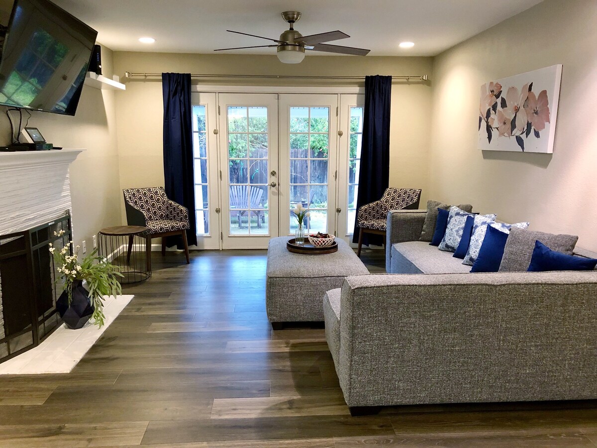 Fully remodeled family-friendly 3bed/2 bath home with luxury floors and high vaulted ceilings that sleeps 10 people ! Includes 2 person blow up mattress and pullout couch. Enjoy this prime location minutes from Top Rated restaurants, Nightlife and Prime Shopping Center. Place features a 75" Smart TV & fireplace with "The Simpsons" arcade game. Each room has a comfortable queen bed, fully remodeled kitchen, and easy to use house appliances, pack n play for infants, and more. Enjoy your stay!