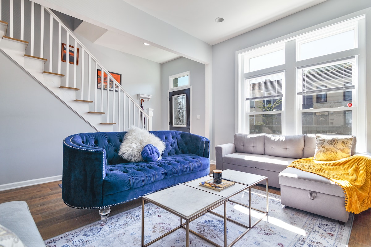 We completed our luxury renovation in kitchen, bathrooms, and patio with a fire pit! We hope you enjoy! The first thing you notice stepping into my house are the sky-high ceilings! Enormous floor to ceiling windows allow light to stream into the the 2 floor home. The stylish and very large terrace are great for summer nights. Walk out the front door & you are in the heart of restaurant row with all the best bars and restaurant in the city. Parking included!