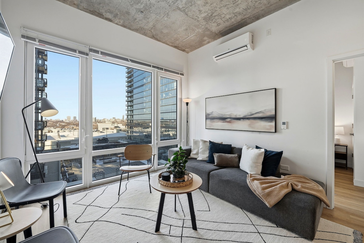 Enjoy a stylish experience at this centrally-located place ✨. Stunning 1,000 square foot modern two-bedroom, one-bathroom unit is perfect for corporate travelers and/or families looking for a stylish escape in downtown Chicago 🌆. 🌇 Rooftop Patio W/ BBQ 🍖 🚗 Free In/Out Parking - 5 Mins Walk To Garage 🌅 Private Balcony W/ Breathtaking Views 🛏️ 2 Bedroom | 1 Bathroom 👑 2 Queen Beds 🛏️ 1 Inflatable Airbed 👶 Portable Crib 📺 Netflix, Hulu, Disney Plus, and Prime subscription Included