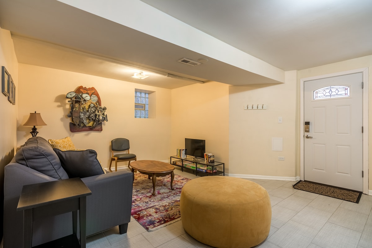 Centrally located between Logan Sq., Bucktown, Wicker Park & Ukrainian Village. Easily jump on the 606 walk/bike path or the Blue Line train. Lincoln Park Zoo, N. Ave. Beach & other hot spots are a quick Uber ride away. The Blue Line offers access to downtown, museums, Bears games @ Soldier Field & direct access to O’Hare. Wrigley Field is just across town. The Bulls play at the United Center 2 miles away. There are great local eats/drink on our block! Note that this is a below level unit