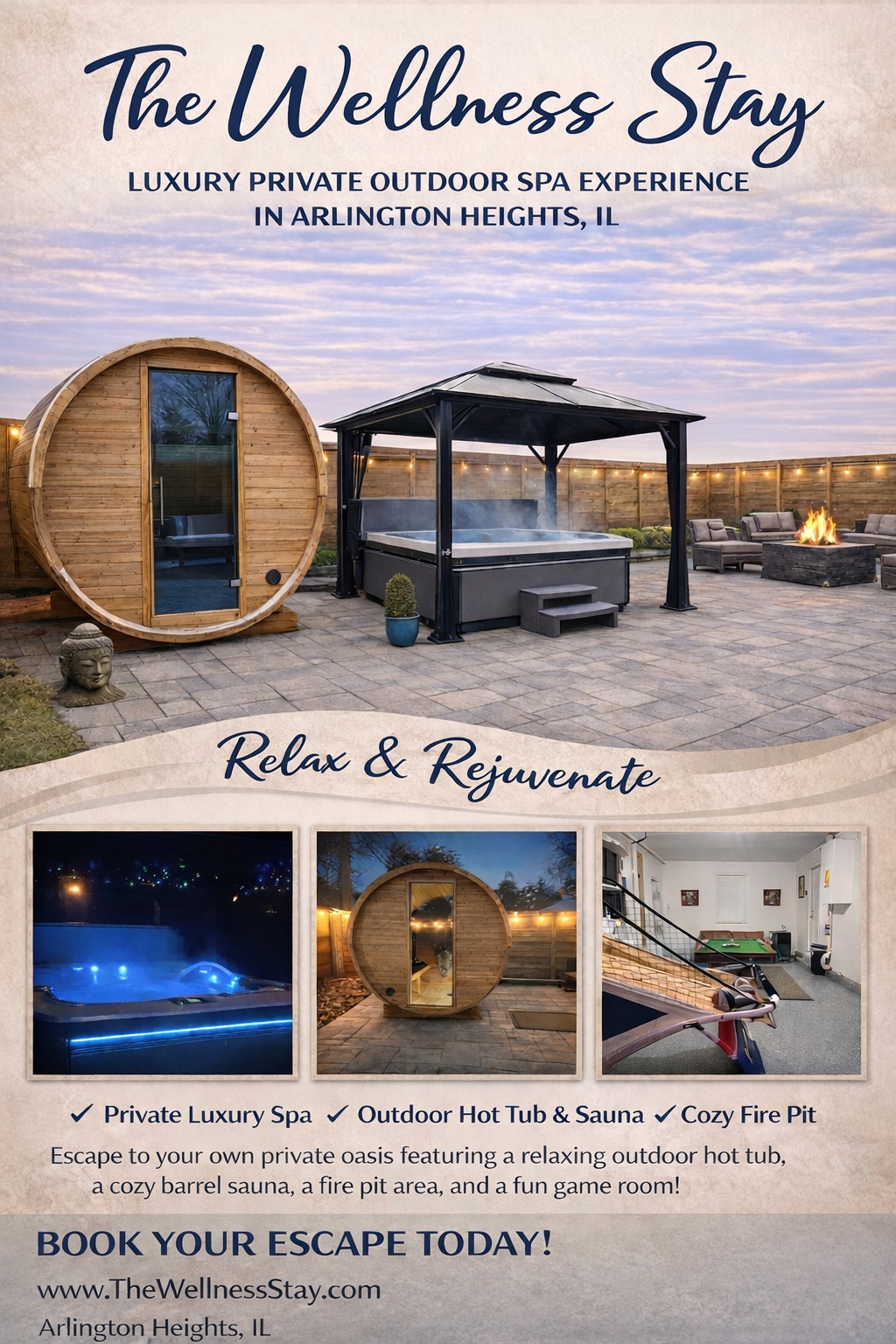 Stay in a landmark Bronzeville Brownstone reimagined by a Chicago nurse as a serene wellness retreat—with hot tub under string lights, Sauna (cold plunge upon request at booking) hammock swing, Blackstone grill, fire pit and an outdoor bar. Minutes to McCormick Place, Soldier Field, Museum Campus, White Sox Rate Field and 31st Street Beach. We are a quick 15 minute train ride from downtown with train station 2 blocks away. Walking distance to cafes, free street parking in a quiet neighborhood.