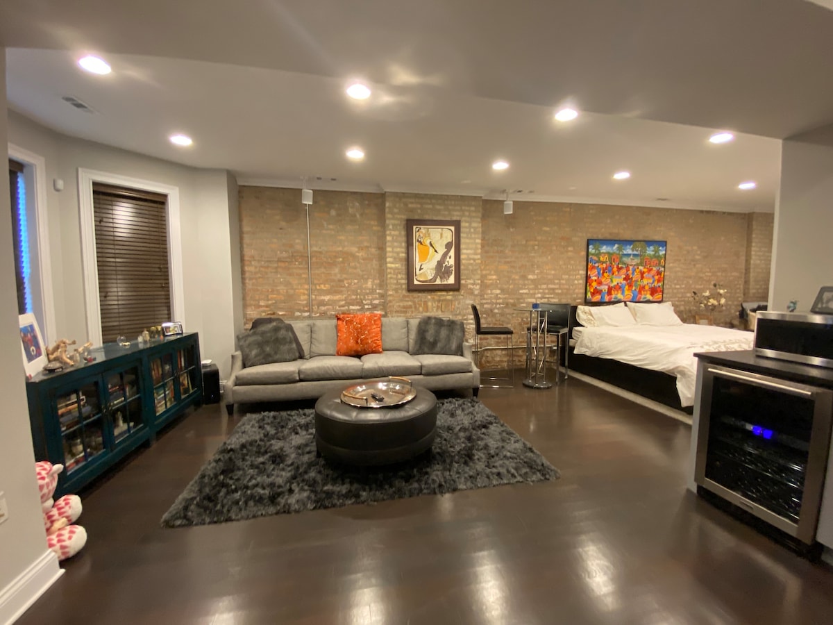 This apartment is a large studio in the heart of Lincoln Park! New construction and all furnishings & appliances are brand new. It is perfect for a couple...but can also sleep 3-4 for a girls trip or a family with small children. You enter with your personal keypad code which we give you a few days prior to your stay. And we are always available by text or email should you have any questions about the apartment. Set in Lincoln Park, this apartment is steps away from shopping along Armitage and Halsted Avenue. There’s grocery stores, restaurants, and cafes nearby, plus red and brown line train stations that access Downtown and other parts of the city. Street parking is relatively easy around the apartment and we offer free residential parking stickers in the apartment on the desk. We also offer a clean garage space (with free EV hook up, should you need it) for $20/night.
