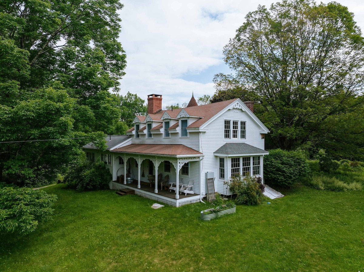 1873 Stylish & cozy Hudson Farmhouse w/ a wood burning stove & the perfect porch. 14 minute drive to Warren St This 3 bedroom + office home has been lovingly updated while maintaining the original details of this historic property. Located on over an acre of land, on a quiet street, this peaceful retreat is the perfect escape to unwind and relax. With high ceilings, tons of oversized windows, and an open layout, this house feels both airy & bright.