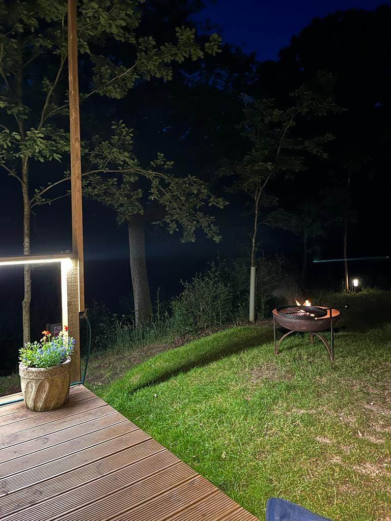 The Woodland Zeppelin (Outdoor Bath Available April to November) Our Zeppelin landed in 2017 and has been a popular romantic and lifestyle retreat, from busy lives, since then. The woodland Zeppelin is designed differently inside to the original Airship 001, to appeal to all couples and those who have enjoyed their stays with us, previously. This accommodation has no mains plug sockets and sparse mobile signal. It was designed by the architect Roderick James.
