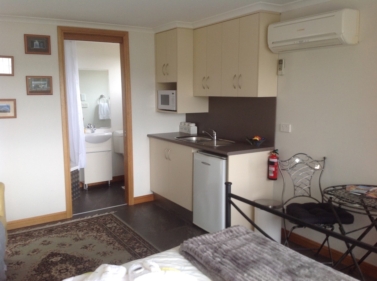 Suitable for couples and solo travelers. Self contained studio room with double bed includes. Kitchenette and en suite bathroom. It is attached to main house, with private entrance on small acreage.. Internet, tea coffee, light breakfast ingredients, iron, hairdryer and use of washing machine included Close to wineries, strawberries farm, the West Tamar tourist areas and Northern beaches. Near main road so some traffic noise during day, is quiet at night. Not suitable for Quarantine.