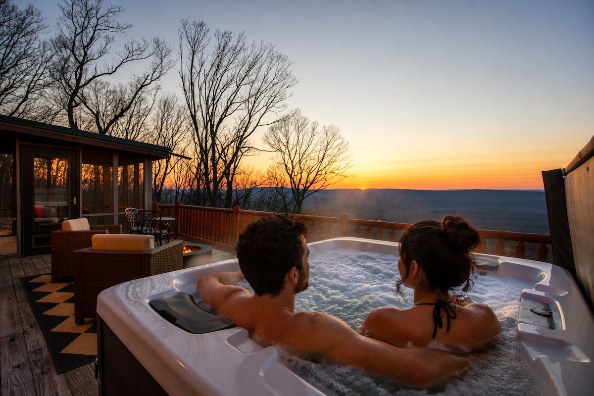 IG @montevistawv Luxury Getaway Professionally Designed for STR 🏔️Massive Panoramic 3 State View 🏌️♂️Golf Ball Driving Range 🏀 Pickleball, Basketball, Volleyball & Tennis 🎮 PlayStation 5 Mini Disc ♨️ 6-Person Hot Tub 🔊Sonos Sound Throughout 🔋Level 2 EV Charger 🥾 Hiking Trail on site 🌳 33 private acres, no quiet hours 🔥 Massive Firepit + Grill & Pizza Oven 🛋️ Cozy Gas Fireplace 🌐 Fast WiFi & Three 65" Smart Tvs 🛏️ 3 King Beds & Twin Bunk Bed 💼 Dedicated Work Area