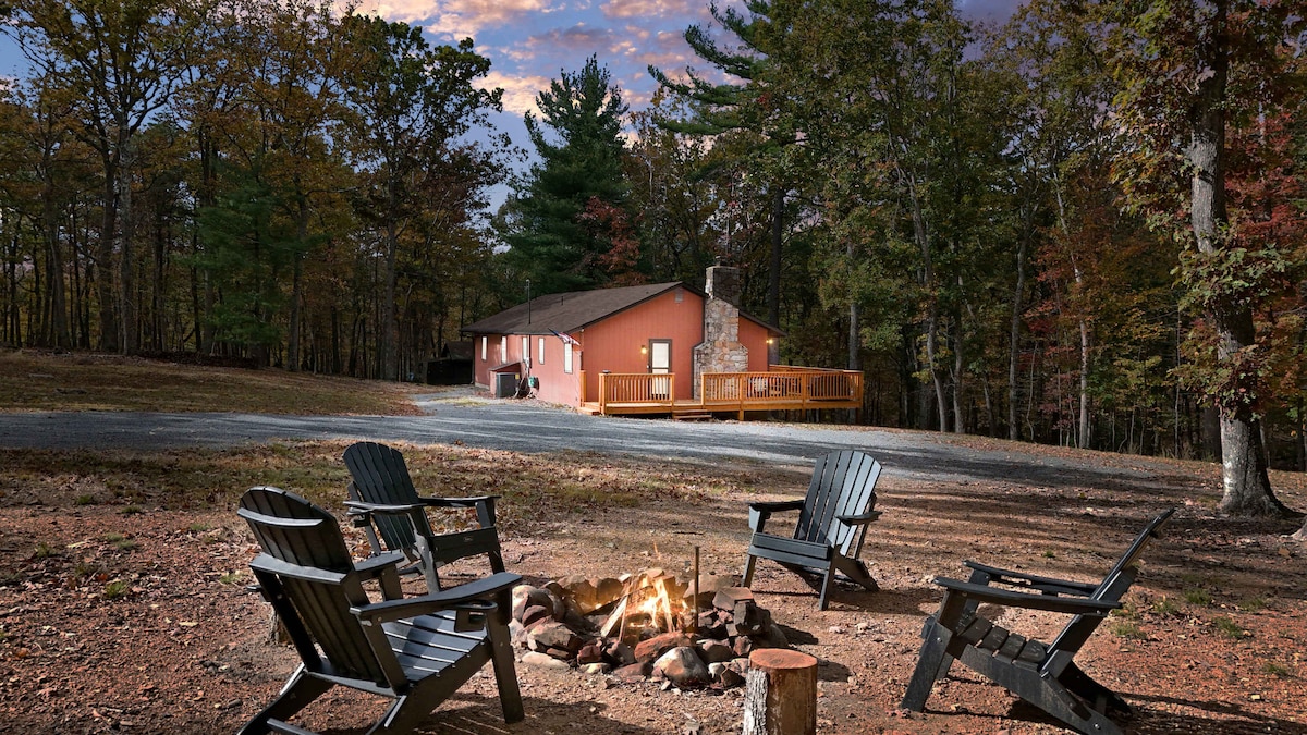 Be Still, our flagship mountain retreat!Experience an elevated escape to Berkeley Springs 8 person Hot Tub 🌳Screened in porch+2 open Decks 🥾Direct access to hiking trails PRO TIP:leads to brewery 👙Community Pool+Kiddie Pool+Jacuzzi (seasonal) 🛋️3 Family Rooms 🪵Massive Firepit+provided Firewood+Grill 🔥Cozy Propane Fireplace 🎲Pool Table+Shuffleboard table+Board Games+DVD Library 📺WIFI+two 65in TVs 🛏️5 comfy bedrooms 💆🏼♀️5 FULL Bathrooms+1/2 bath 🛍️5 min to downtown Berkeley Springs