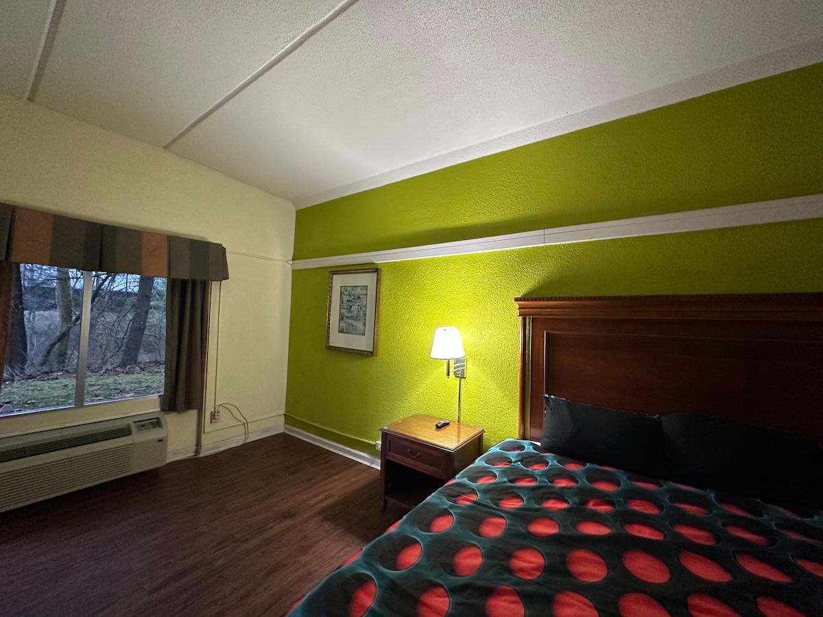 This vintage motel has been updated to provide charming efficiency rooms. Each room has a kitchenette, private bath, 55” smart tv, & Wi-Fi. The Knolls is located steps from the VA, minutes from Martinsburg & Charles Town, & close to Charles Town Casino as well as many other local attractions. Parking is directly in front of your door. Each room is equipped with a smart lock on the door. Room #9 is comfortably designed with luxury linens, memory foam mattress, and so much more. Come stay with us!