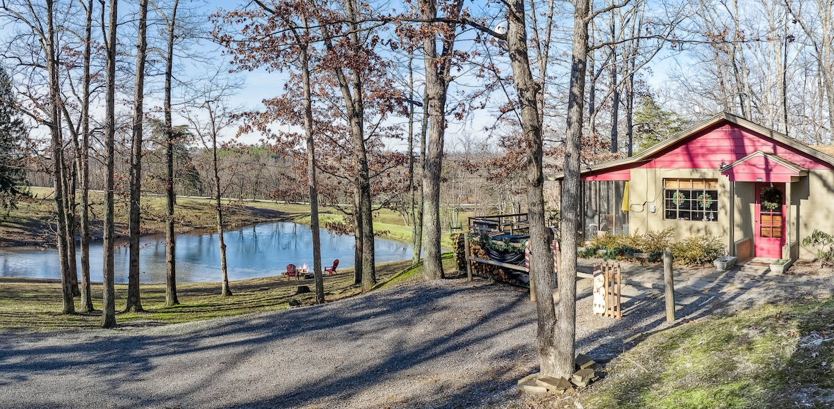 Mountain home: like in the movies, on 50 acres. Includes soaring mountain views, swimming holes, hiking trails, ATV trails, fishing creek, mini white sand beach, hot tub in a cave, huge boulder rustic fire pits, cave, lake, cabanas, all in a heavy forest exclusively for guests. Private: you cannot see another house from the front porch or back decks and it has thick woods all around. At the top of the property are soaring views with 3 miles of visibility. No need to go to the national park.