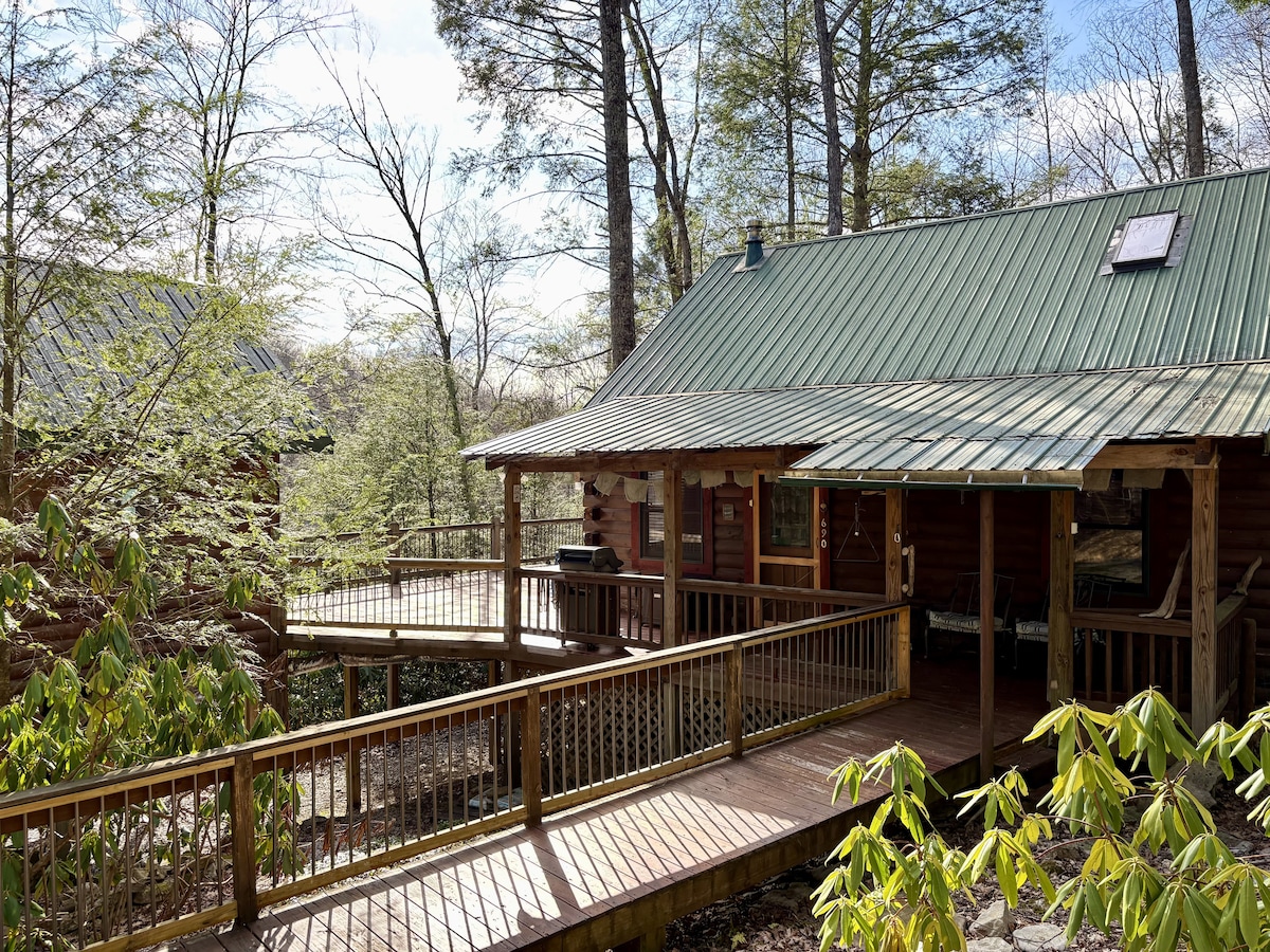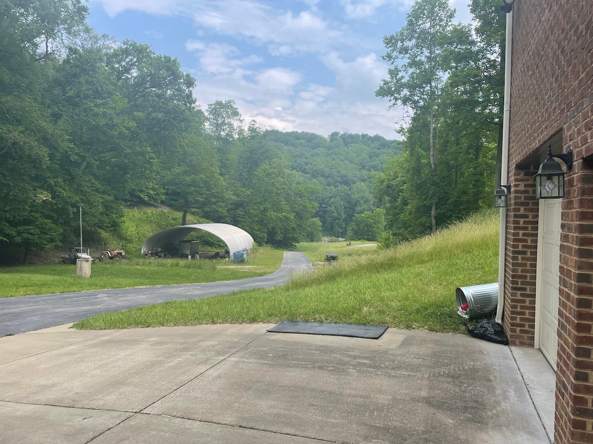 Mountain home: like in the movies, on 50 acres. Includes soaring mountain views, swimming holes, hiking trails, ATV trails, fishing creek, mini white sand beach, hot tub in a cave, huge boulder rustic fire pits, cave, lake, cabanas, all in a heavy forest exclusively for guests. Private: you cannot see another house from the front porch or back decks and it has thick woods all around. At the top of the property are soaring views with 3 miles of visibility. No need to go to the national park.