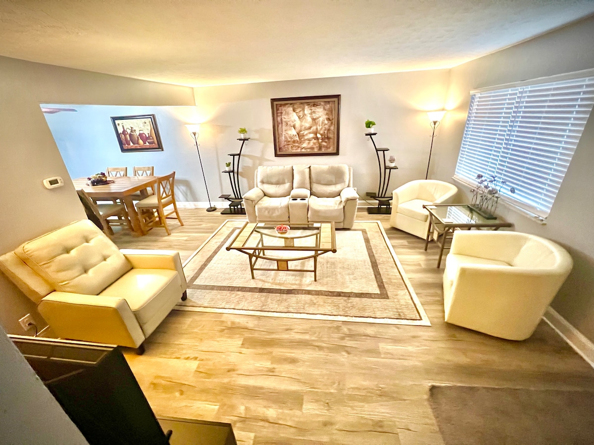 (Read carefully) Please limit your friends/relatives to a couple people and be gone by 8 pm... no drinking parties.The size of four boring hotel rooms .5 minutes to Marietta Ohio private secluded in the woods. 2 miles off I 77 ,1300 sq ft room 10 ft ceilings ,air hockey,,roku,netfix,direct tv.65 inch,huge above garage with central air/gas 2 Queen beds and one full bed and one fold out futon and two large couches.Owners live on property