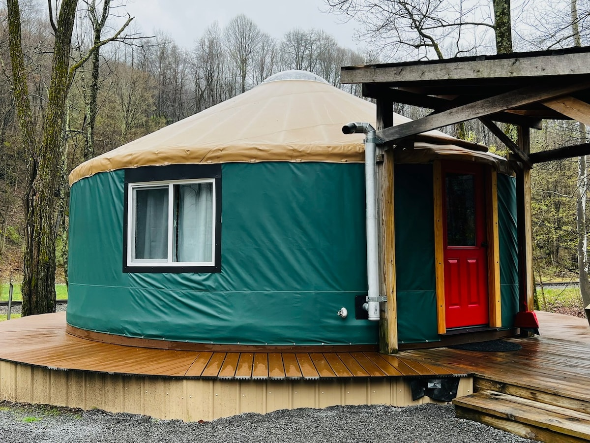 Discover The Pacific Yurt on 2 miles of Shavers Fork. Enjoy a circular vinyl haven with private bath, kitchen, loft, and deck with hot tub. Experience trout fishing, hiking, biking, and tubing. Embrace glamping with a wrap-around deck, pellet stove, and modern amenities. Pet-friendly. Welcome to your West Virginia adventure!