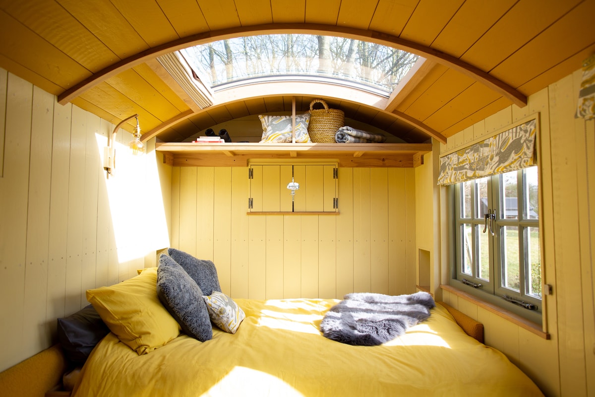 Follow the stone path to our cosy Shepherd Hut with all mod cons, memory foam mattress, log burner, star gaze thru the roof light. Leave the everyday hustle & bustle behind & enjoy our peaceful space.Freshly made bread continental breakfast choice of cereals, fresh fruit, illy coffee, teas, yoghurt & milk.Goodwood 20 mins away. Great beaches & places of interest a short drive or cycle away. West Wittering beach & local RSPB reserves. Edge of AONB Chichester Harbour. 7 mins drive to Chichester.