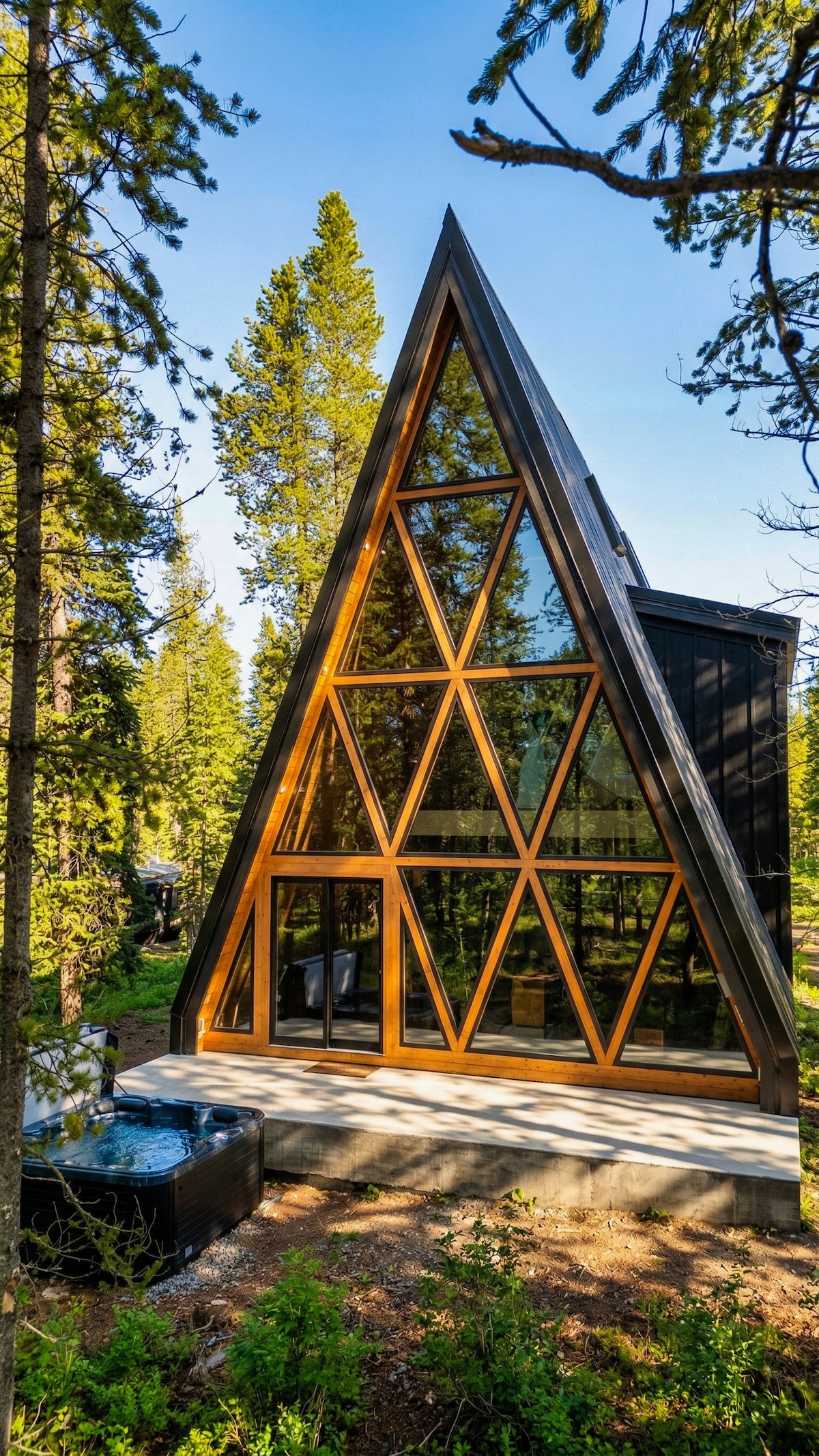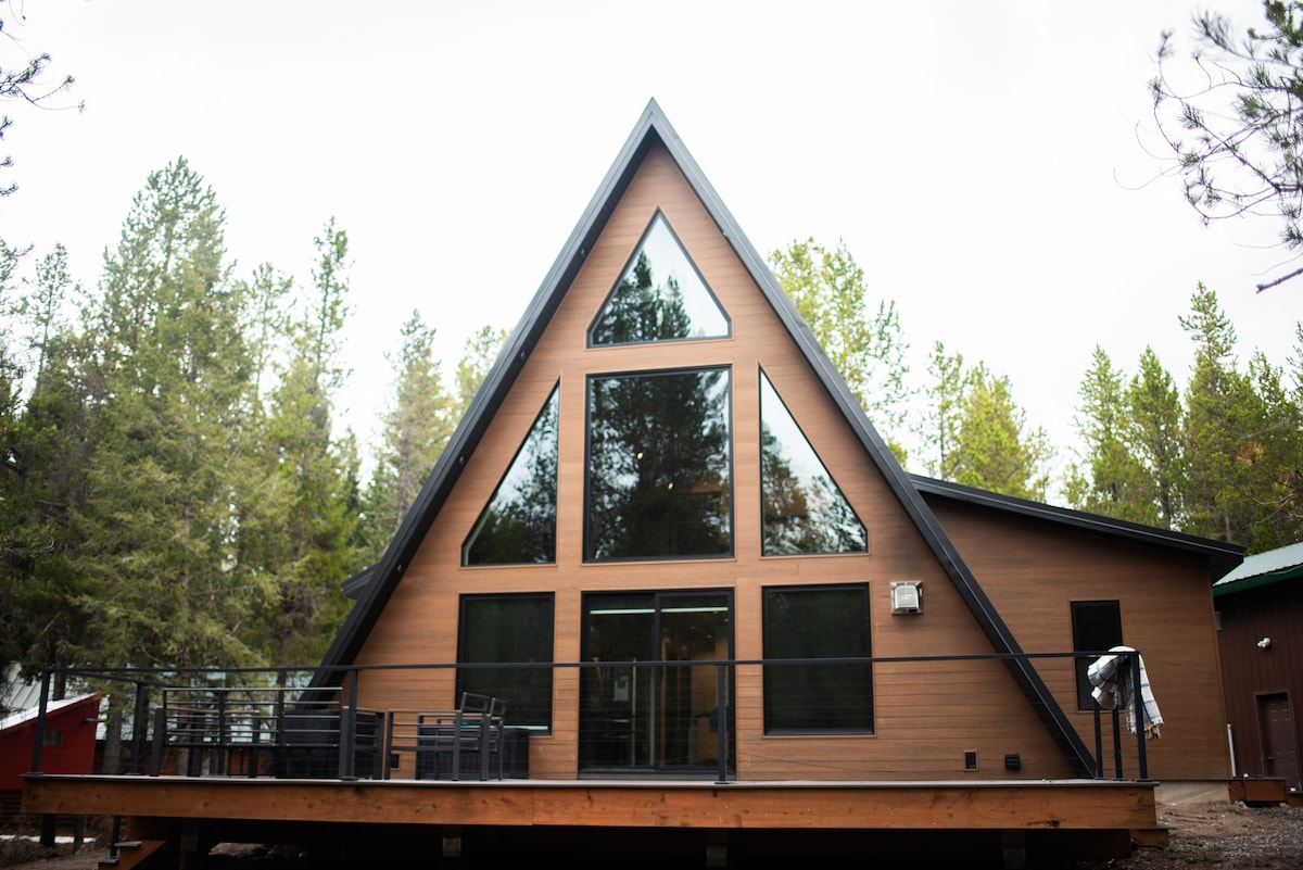 Welcome to Awayframes, a thoughtfully designed mini-resort that will eventually include 14 modern A-frame cabins, a main lodge, and shared amenities spread across over 8 acres of forested terrain. Experience serenity in our sleek, modern A-frames nestled among the trees. This stylish retreat is just a 3-minute walk to Henry’s Fork River and 30 minutes from Yellowstone. Perfect for outdoor adventures, hiking, or simply unwinding. Escape and recharge in this peaceful haven.