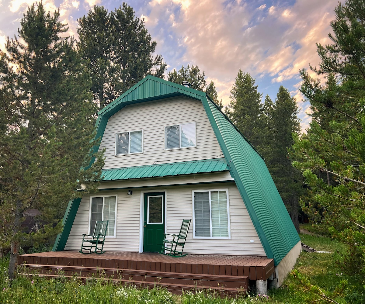 As featured in Secrets of National Parks by National Geographic! Come make memories at this cozy A-Frame cabin. Enjoy hundreds of acres of forest land right out the back. Explore miles of trails on your bike, ATV, or snowmobile. Walk 5 minutes to the slow and shallow Buffalo river for a lazy float or safe wading. Visit Yellowstone National Park about 30 minutes away. Come back to relax in the hot tub, enjoy s'mores around the fire pit, or snuggle by the fireplace and stream your favorite movie.