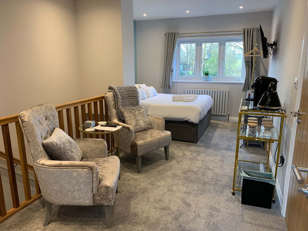 Located at Fernthorpe Hall set in beautiful private grounds, in the heart of Uppermill, this luxury studio is just five minutes walk from the galleries, shops and cafe bars of this quaint, culturally active village. You will be warmly welcomed by your hosts Peter & Geoff to a newly furnished comfortable double room with king size bed, seating area, TV, separate kitchenette (microwave, fridge, kettle, toaster) shower room. Whether business or pleasure we hope you have an enjoyable stay with us