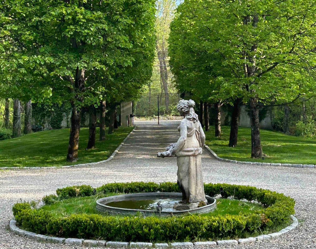 A private, European-style retreat just 60 minutes from NYC. Set on an eight-acre gated French estate with its own lake, this guest house feels like a mini Versailles with 18th-century statuary, fountains and manicured gardens. Designed by David Easton, it features heated stone floors, a heated towel rack, luxury linens, gold fixtures, fast WiFi, and a private entrance. Minutes from Waccabuc Country Club and the Katonah train station.