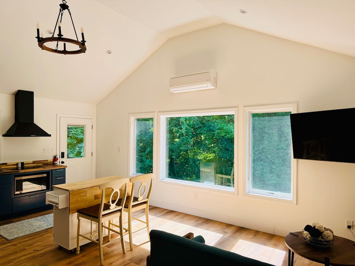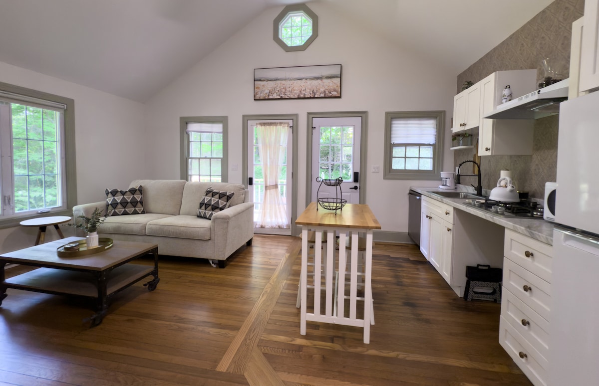 Brand new, light-filled private cottage guesthouse overlooking the woods in the heart of Greenwich, CT. Floor to ceiling windows, radiant heat bathroom floors, queen Casper mattress, a dedicated parking spot, Wi-Fi, TV, kitchenette with full fridge, Keurig coffee maker, microwave, toaster and induction stovetop and all utensils. Perfect for a weekend getaway or a quiet place to work.