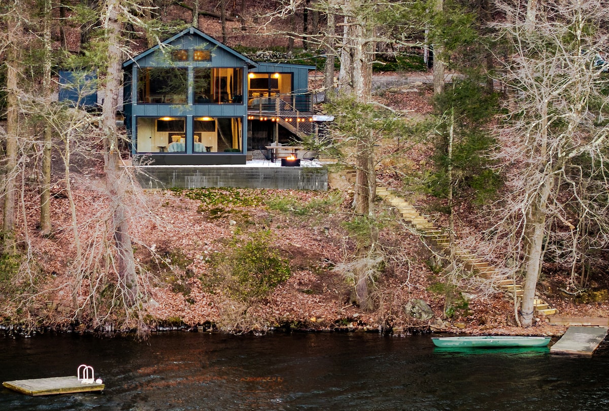 Escapology-A spectacular destination, designed as a luxury Lakehouse with its own dock and 120' private lakefront. Close to NYC and ideal for a quick trip, remote work or an extended retreat. Artfully Designed Space-Modern retrofit thoughtfully curated with custom artwork and furniture throughout this historic 1940's gem. Purpose built for your outdoor routine, Canoeing, Swimming, Hiking, Grilling etc We recommend 3+ nights if you can.