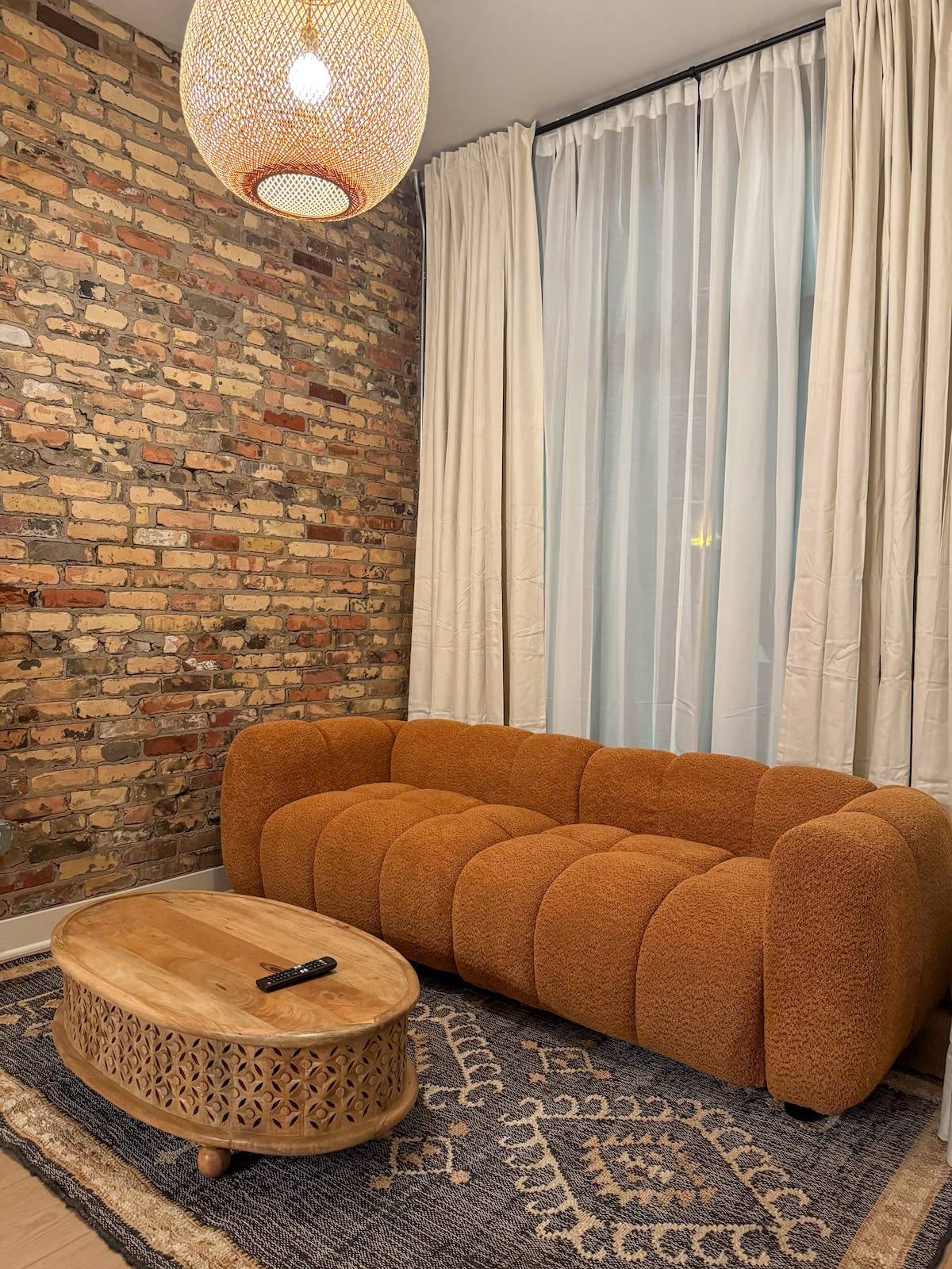 Vaulted skylights allow natural light. Ksize bed. Couch opens into a full size bed. (DEEP cleaned to AirBnb COVID-19 disinfectant standards) Fully stocked kitchen, sm. bathroom w/ shower. Parking ft. of house, 1.5 M from Lake Michigan Shoreline, 2 blocks to 15th St. entry to Prairie-Dune Trail. European Market (May -Oct) each Saturday downtown. Fall season drives along U.S. HW 12 & 20 for foliage Winter day hikes, x-county skis trail, shopping trips to the Michigan City Outlet mall.