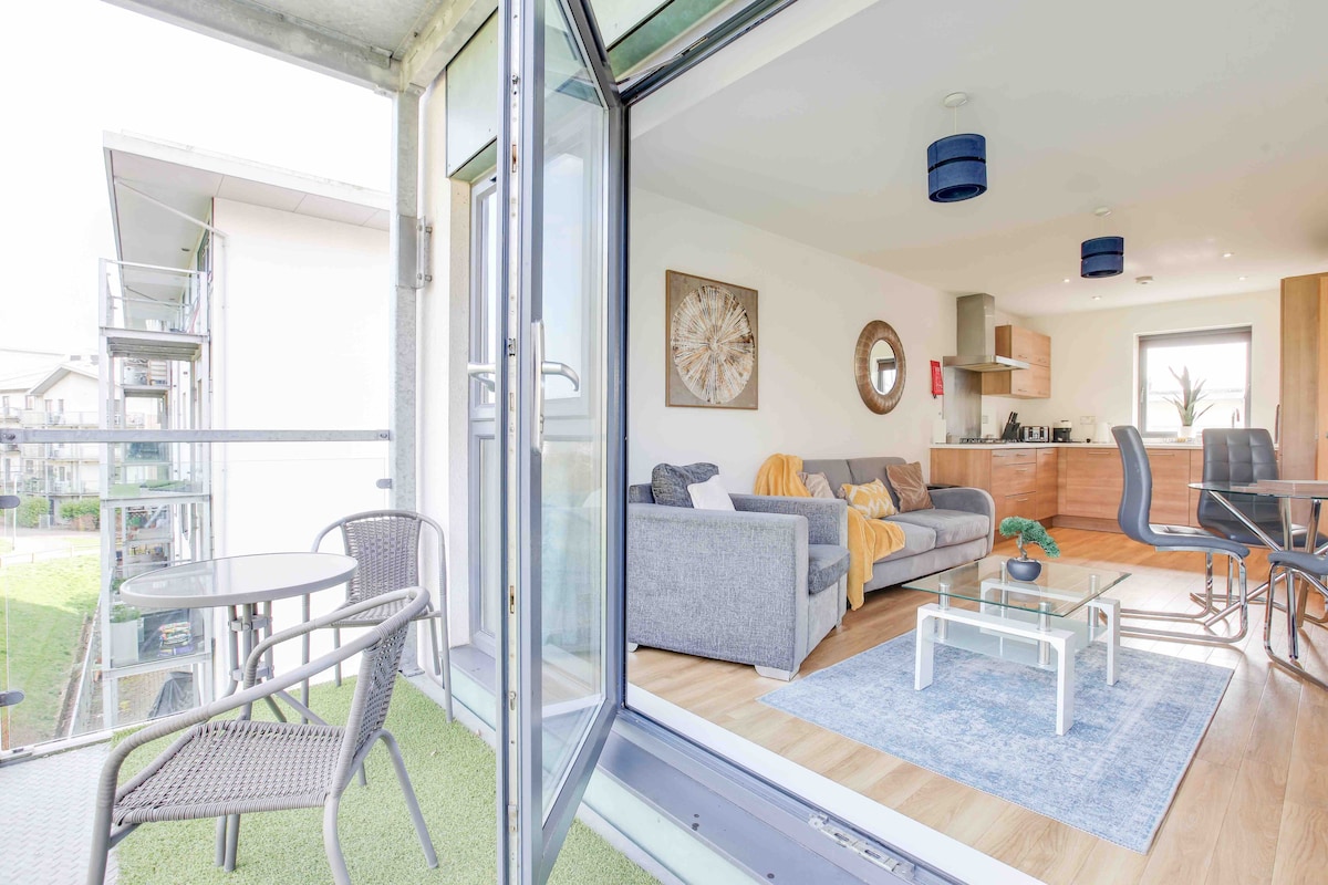 Beautiful 2 - bedroom, modern apartment overlooking the Chatham waters (River Medway). Super high speed WIFI. Excellent connections to London with the Train station 0.8 Miles away. Balcony outside rooms and living room for outside green open space. Gym access. Great for tourist or business stays. 5 minutes walk to ASDA supermarket. Historic Dockyard 2 minutes away by car with outlet centre, bars and shops. Regular deep cleaning and sanitisation Refundable deposit of £150 may be required
