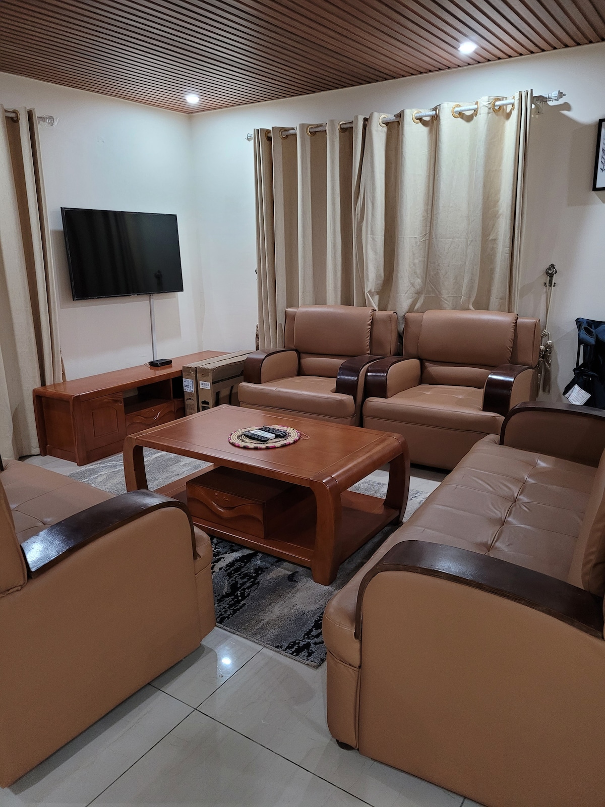 Forget your worries in this spacious and serene space. Tastefully decorated and fully furnished modern 3 bed house with scenic mountains views Perfect for: Remote workers, expats, travelers, and business visitors. Wi-Fi Guest Toilet AC Utensils Solar power Spacious parking Security guard CCTV Electricity Please note that Havillah Court is located on top of a hill but is accessible via a paved road from the main highway. You need a good car that can climb hills.