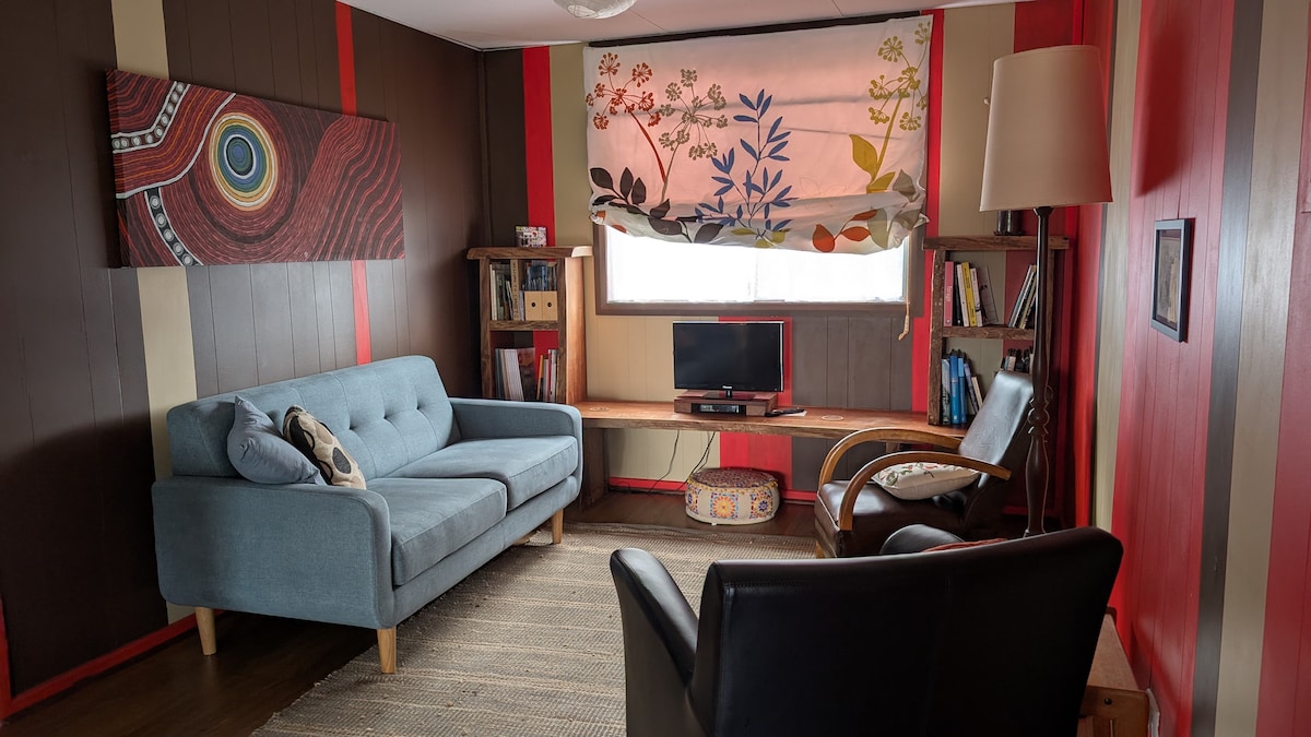 This recently built straw bale cottage on its own large block is the ideal cozy base for nature lovers and adventurers. The small but very comfortable, eco-friendly space with beautiful views in almost every direction is also perfect as a romantic getaway or quiet retreat for travellers. This unique home was a labour of love built by your hosts. It has all the wonderful atmosphere that lime rendered straw bale creates - undulating walls and deep windows overlooking the bushland.