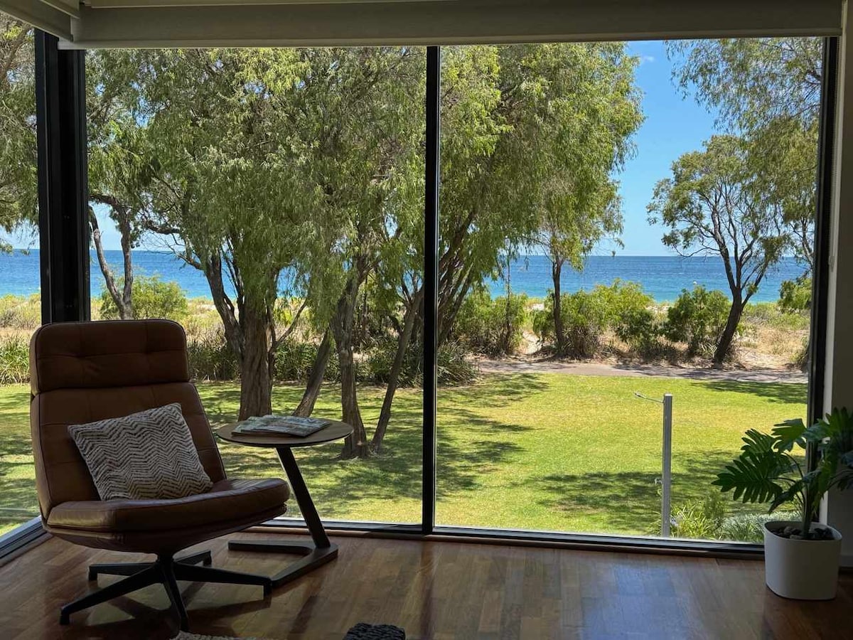 Cozy beachside retreat. Our newly refurbished studio apartment is just steps from the ocean. Decorated in a fresh coastal style, this inviting getaway is ideal for couples or a stopover on your journey through the South West. With ocean views from all windows, you can relax at the Marri bench with a drink and watch the sunset over the ocean. Enjoy a complimentary breakfast with cereal, bread and eggs. Beach towels are provided, and you'll find a BBQ and comfortable seating in the courtyard.