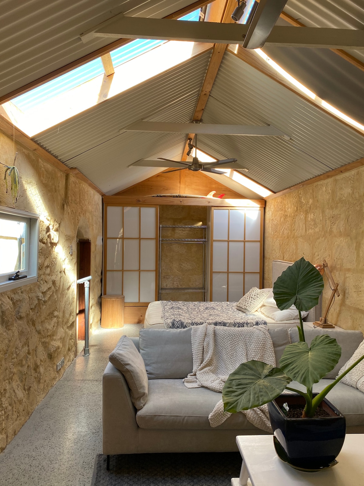 The limestone studio, full of Freo character, is conveniently located close to the rich cultural life Freo has to offer; beaches, cafes and historic Freo with galleries and music. All are within walking distance. There are also several buses to take one into the heart of Freo and to the train station. The studio at the back of the main house has access to a screened private area of garden with a little deck, a weeping mulberry tree and some native plants.