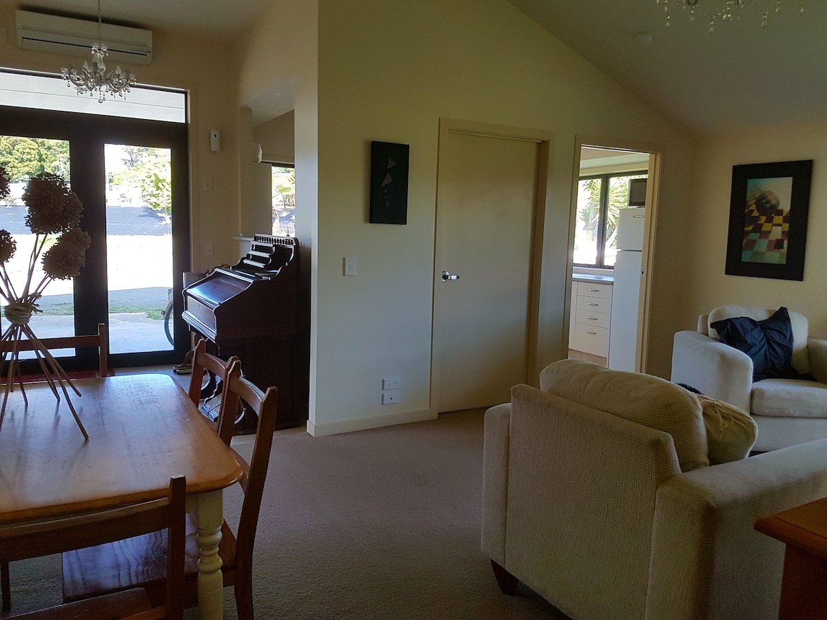 For bookings less than 5 nights please send us a request. Quality Self-Contained Accommodation on 9 Ha Organic Kiwifruit Farm. Green healthy environment. 2 Bedrooms. Hotel quality beds 1 Queen 2 Singles. True Kiwi Experience immersed in organic kiwifruit vines. Peaceful country setting close to beaches and cafes but more affordable! Central location to see the Bay and lots more. Warm in winter. Fun outdoor bath under the stars anytime. Free late checkout if possible. Summer Pool on request.