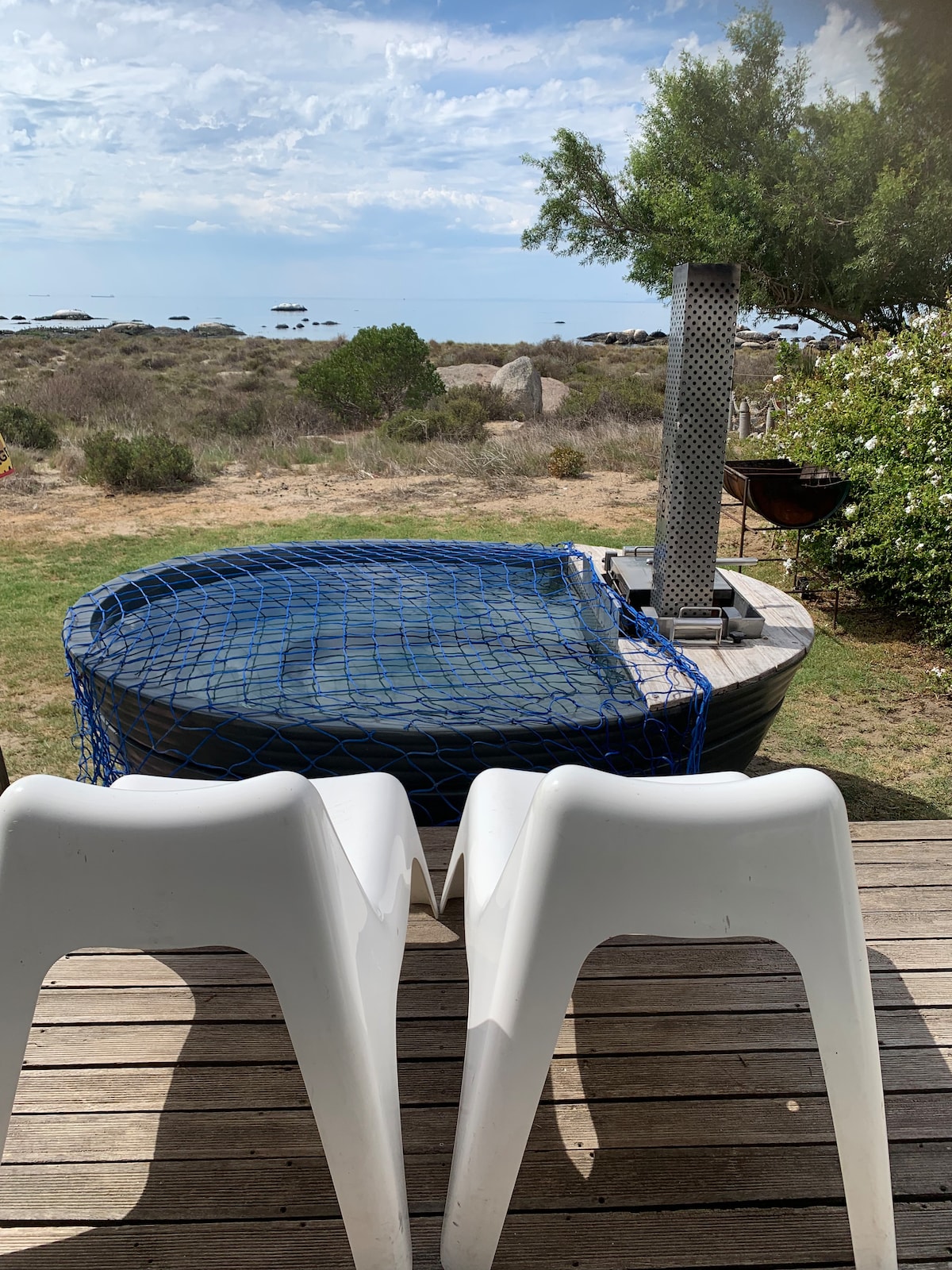 Enjoy early morning kayaking in the bay ,relax on the stoep with a good book in the afternoon. Perfect for 4 adults and 3/4 kids(2 private bedrooms) Beach is 40 meters from house. Children can swim/kayak,catch fish off the rocks. The cottage is small and cosy, its a simple place, the stoep is large but open, so nights are cool. WOOD - fired hot tub . Late check -out by arrangement 1 1/2 hrs from Cape Town A place to make memories! Lovely day trips around , or else just laze the day away