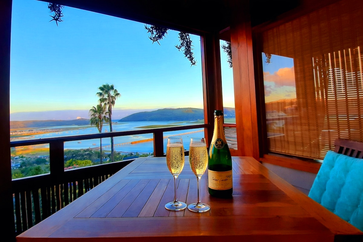 Located in the heart of Paradise, perched high above the town with breathtaking handcrafted views of the lagoon & famous Knysna Heads - a blissful base for creative solo breaks or lovebirds wanting to go off the radar into their own little world. Whether it be glassy summer days or dramatic winter storms, the sweeping lagoon views will take your breath away. The private decks are perfect for champagne celebrations or nights wrapped in blankets whilst enjoying a steaming mug of hot chocolate.