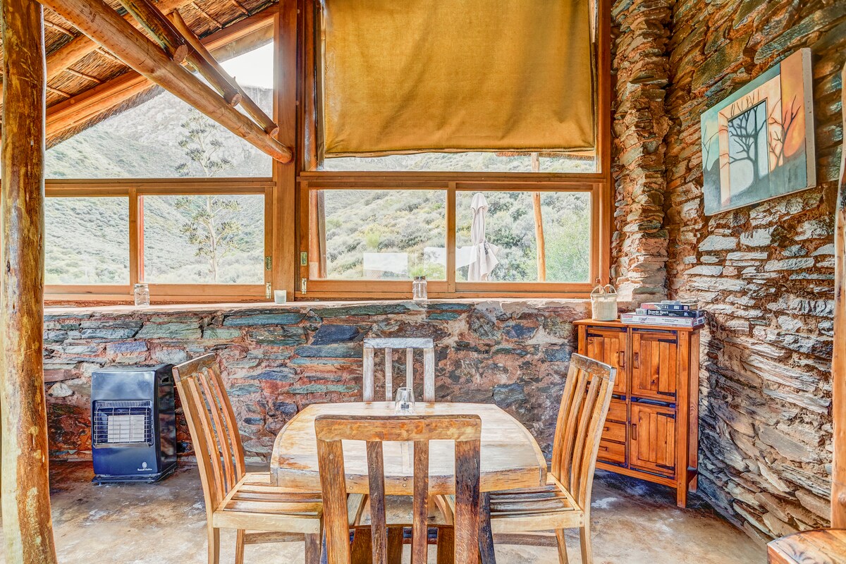 Experience the warm embrace of an earthen dwelling for a getaway in nature. Leaving the worries of the modern world, you will enjoy an off the grid experience with electricity, water and wifi at your fingertips. Relax on the spacious deck and watch the sunrise and sunset over the mountains. Spend the afternoon lazing on the daybed in the bay window and watch nature pass by. Enjoy a sundowner around the bonfire or on a winters evening, light the dover stove and enjoy a true cosy experience.