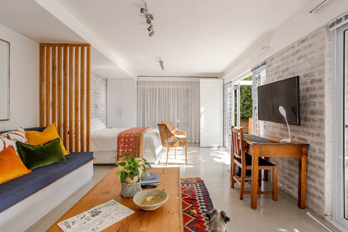 Latest addition to The Rest Factory!!! Experience a blissful and soothing nights' rest at the foot of Table Mountain. This spacious studio is located on the first floor of the building. It is a peaceful sanctuary in the vibrant Bo-Kaap, with magnificent views of the city. Perfectly positioned to make the most of what the city has to offer. The unit is decorated with carefully selected luxurious, sustainable and handcrafted products.