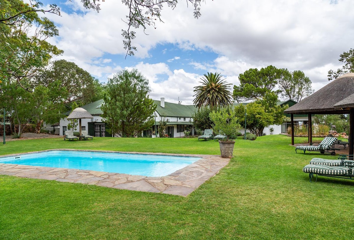 Set in the heart of the Great Karoo, 430 km's North of Cape Town. 8km's North of Beaufort West, off the N1. This beautiful homestead/lodge dates back to the 1860's. Built slowly and soundly to the exacting standards and architectural style of the time, the building remains unchanged with characteristic high ceilings, original wooden floors and wide verandahs which offer guests a sweeping panoramic view of the Karoo landscape. We offer Dinner and Breakfast (optional Extras)