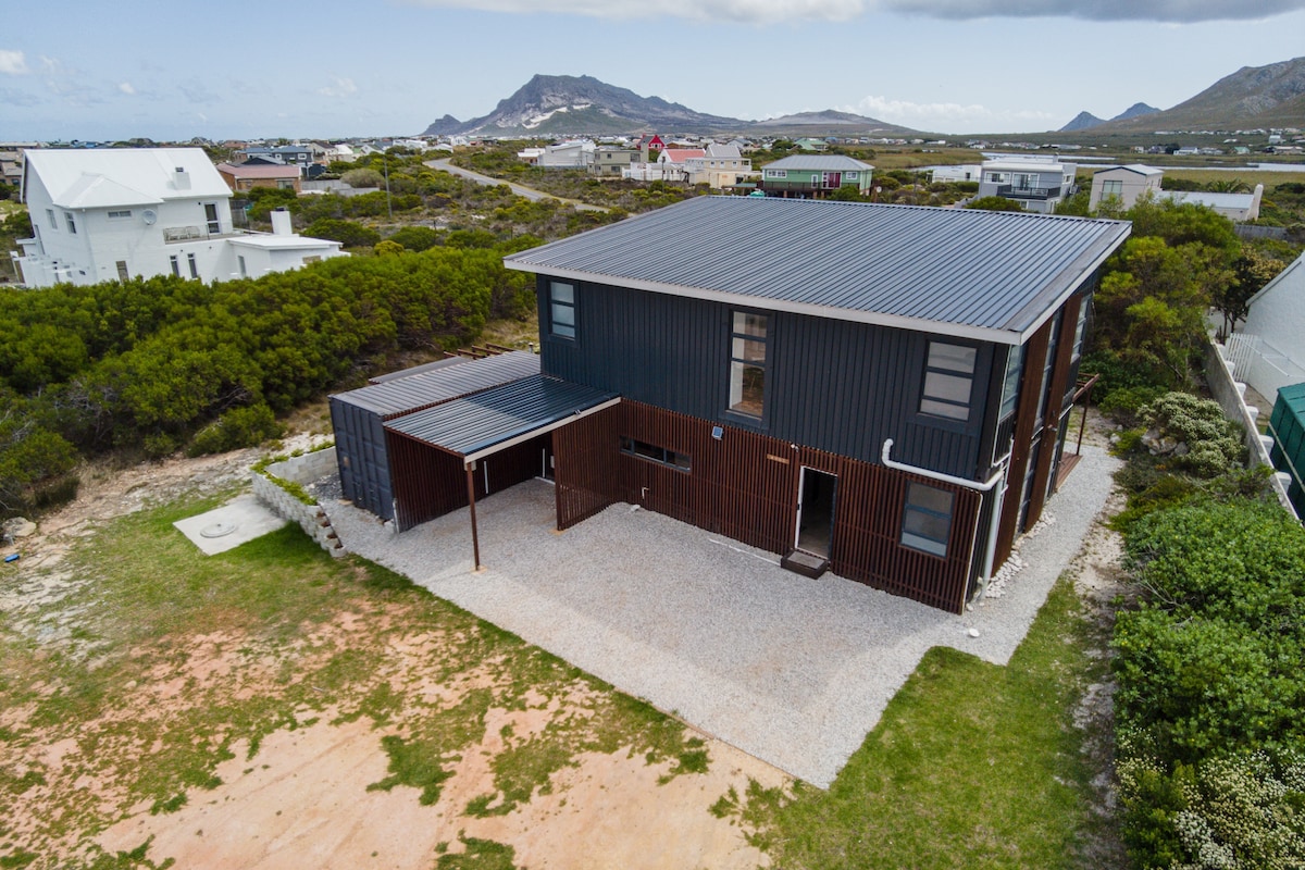 "The Tin Shack" is a beautiful container-built cabin situated on a hill behind the West Coast town of St Helena Bay. The cabin overlooks the entire bay with the majestic Cederberg mountains in the distance. It has two ensuite bedrooms with compost toilets, and a spacious open plan kitchen/living area with a cast iron woodburner fireplace which makes the cabin warm and cozy even in winter. The spacious deck has a Weber BBQ, outdoor seating, and a woodfired hot tub.