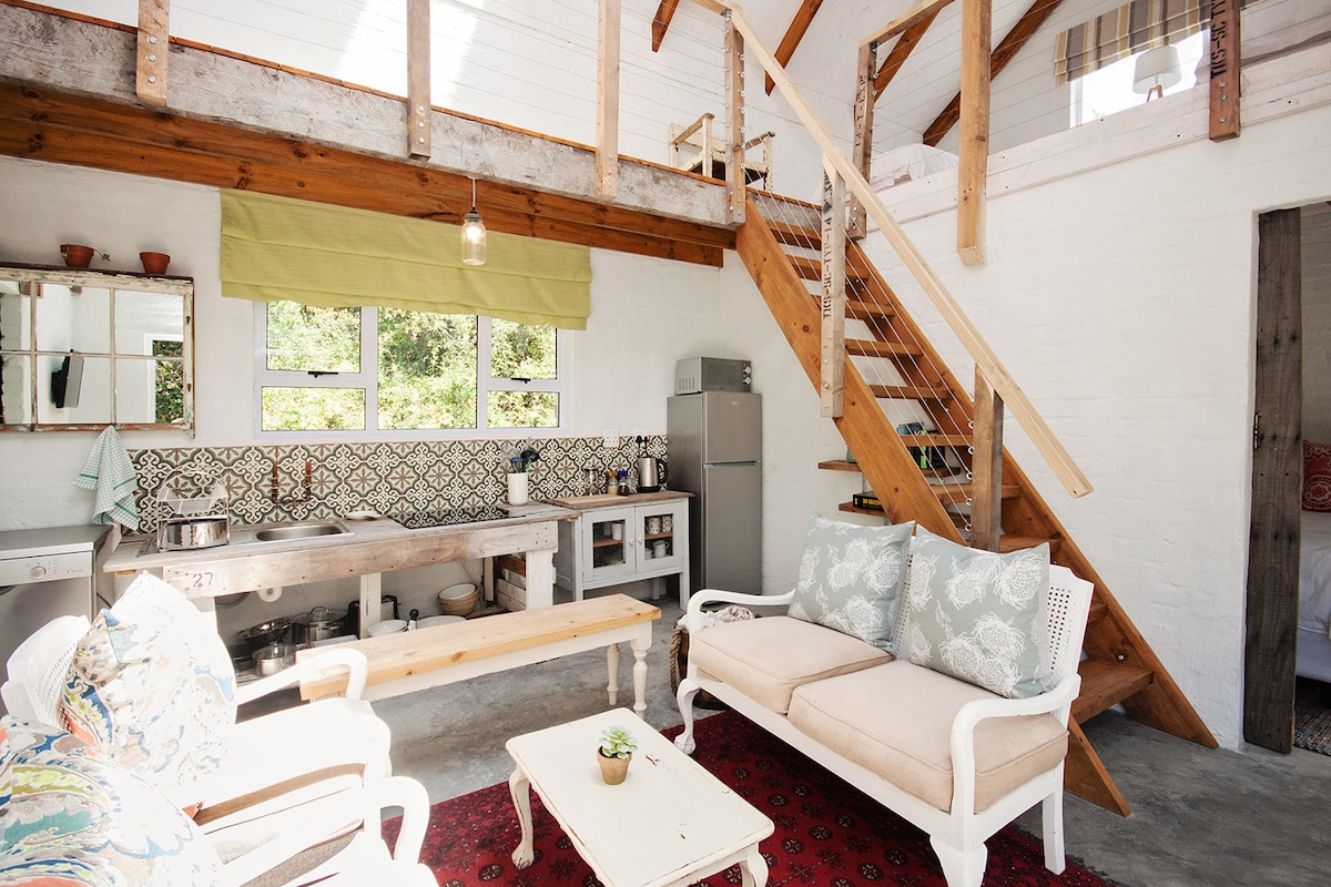 #1 ranked TREEHOUSE in SA with views. Come and relax above the treetops in this one-of-a- kind multi-story TREEHOUSE, with amazing valley and distant sea views. Enjoy being surrounded by nature and birdlife. The loft rooms are an adventure sharing a full bathroom on the lower level. The living area has a kitchenette, a 1-plate electric and gas stove, a lounge, TV, Wi-Fi and opens onto a deck. With its rural setting and unique build, you are guaranteed a special stay in the Treehouse 🏝