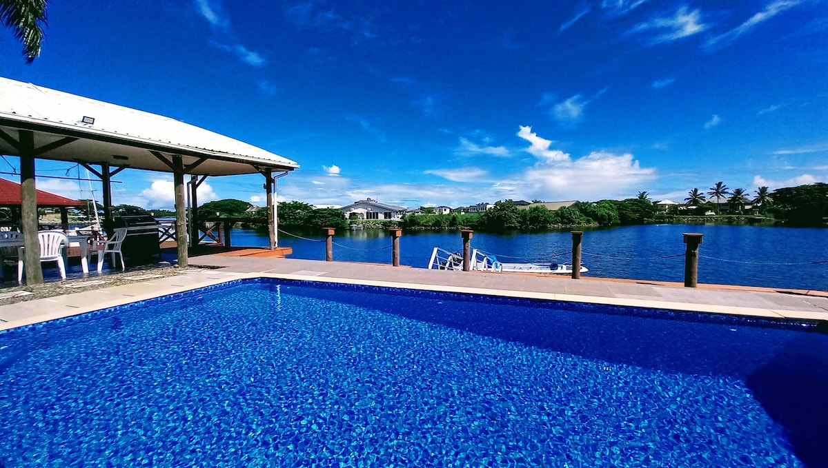 The Waterfront Sunset Apartment is located in a serene waterfront space in Fantasy Island Nadi, very close to Airport Nadi and Port Denarau, and has a magnificent sunset view of the most beautiful attractions of Nadi bay. This charming apartment has a large swimming pool with an extraordinary view of the waterfront, equipped with a poolside dining table and a BBQ grill so you can enjoy your meals. In addition, there is a jetty, so you can experience tropical nature.