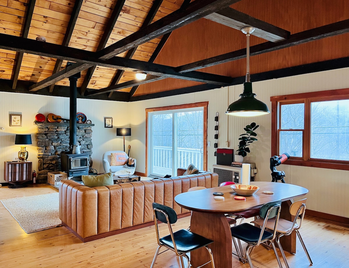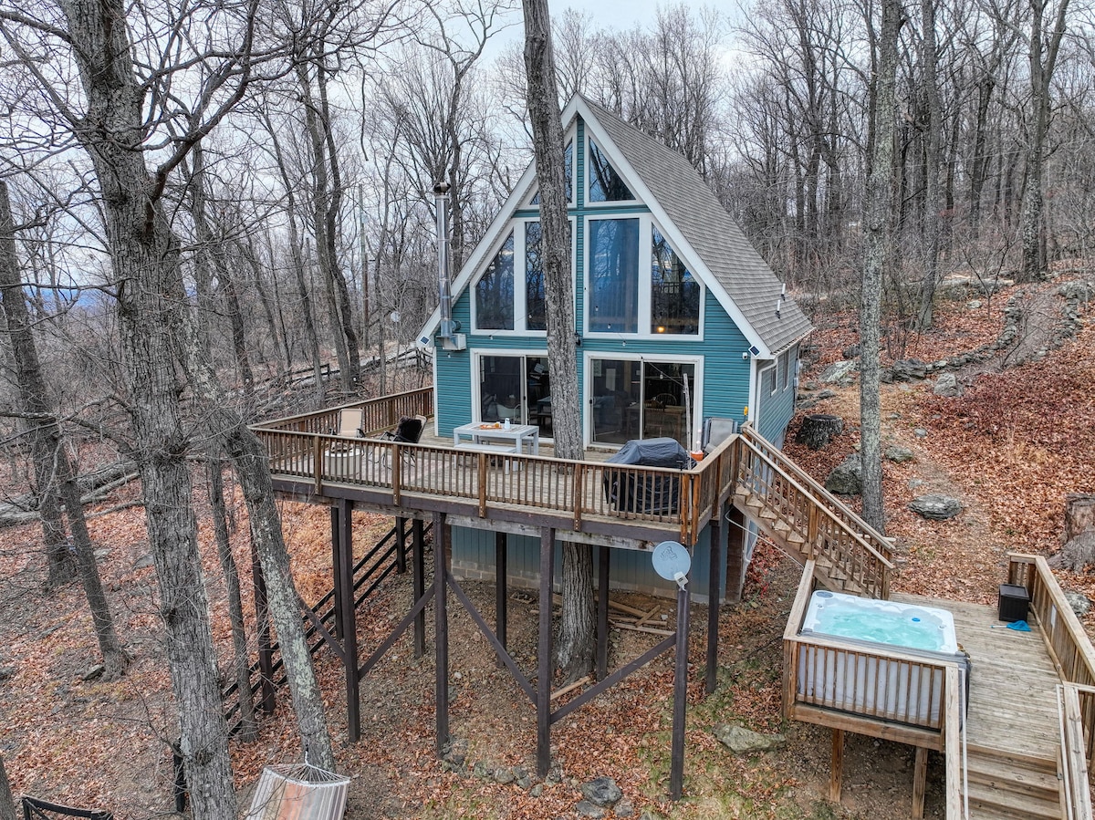 As featured in The Washingtonian! Escape to the recently updated soleil-frame, a mountain A-frame tucked into the treetops of the Shenandoah Valley with 180 views. This cozy, rustic retreat offers a hot tub under the stars, a wood burning stove, large deck, grill, fire pit, fast Wi-Fi, swing set, and wooded land ready to explore. Sleeps six (queen, full, twin trundle). Peacefully secluded in Virginia wine country, with Instacart and Uber Eats delivery and easy access to Shenandoah National Park.