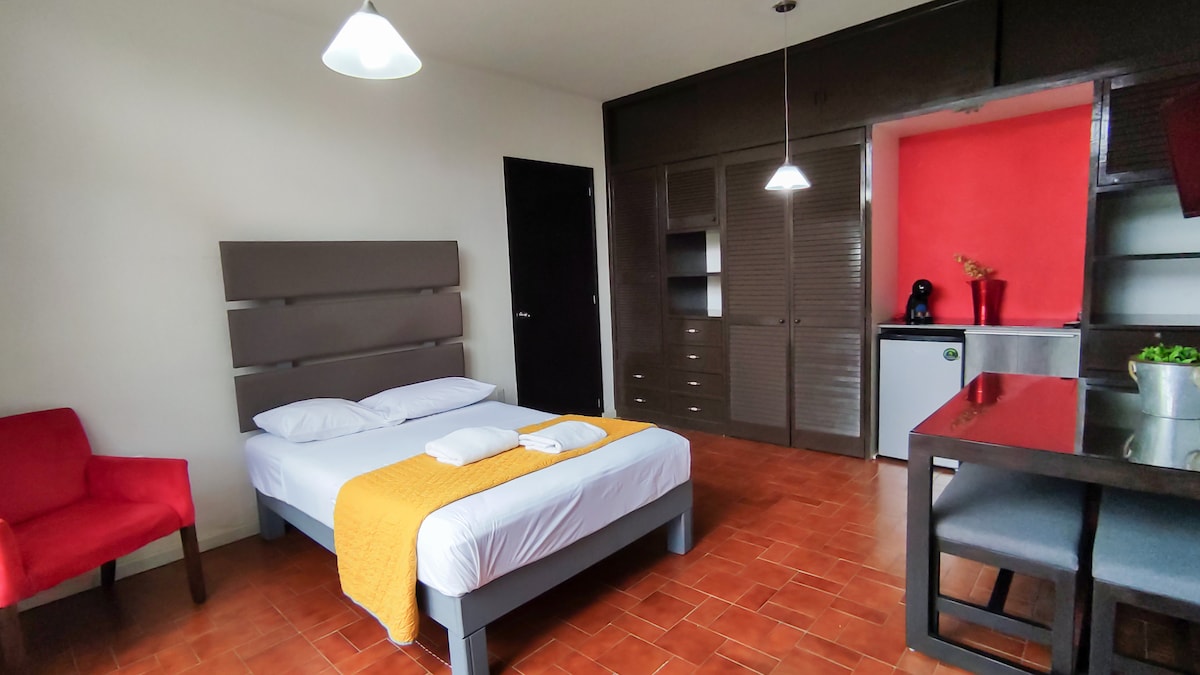 Un hospedaje para escapar de la rutina y conectar con la naturaleza, tiene un diseño moderno con una cálida decoración, rodeado de naturaleza donde podrás observar muchas aves, una linda vista al volcán, balcón, terraza, una refrescante piscina y jacuzzi privado. Un lugar ideal para parejas, amigos o para que puedas teletrabajar tranquilamente. Ubicados estratégicamente cerca de todas las actividades principales y a tan solo 2.5 km del centro de La Fortuna y a 1 km de La catarata La Fortuna.