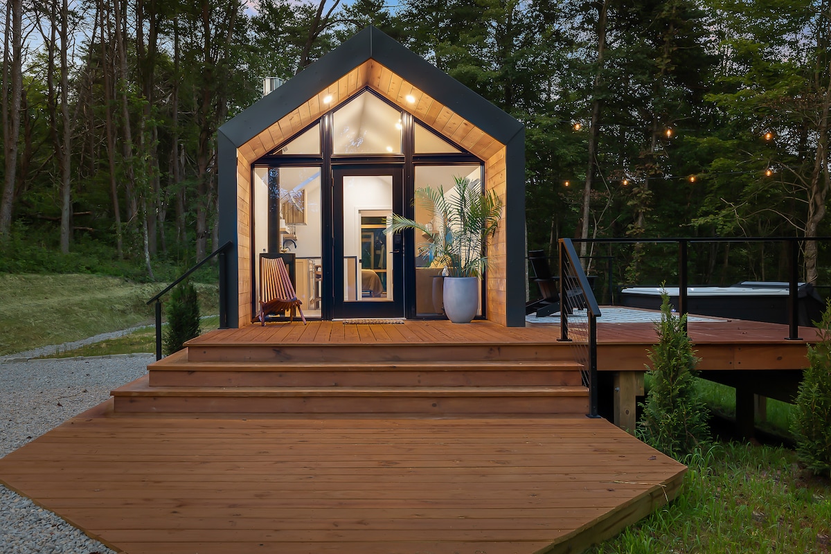 Escape to The Grove at Saving Hollow. A modern, thoughtfully designed cabin just 3 miles from magical waterfalls and breathtaking hiking trails in Hocking Hills. This peaceful, secluded retreat features a hot tub, cozy gas fireplace, fire pit, hammocks, and a coffee bar for slow mornings. Perfect for couples, small families, or close friends seeking connection, stargazing, and a luxurious nature escape. Unplug, unwind, and enjoy the serenity of the forest in total comfort and style.