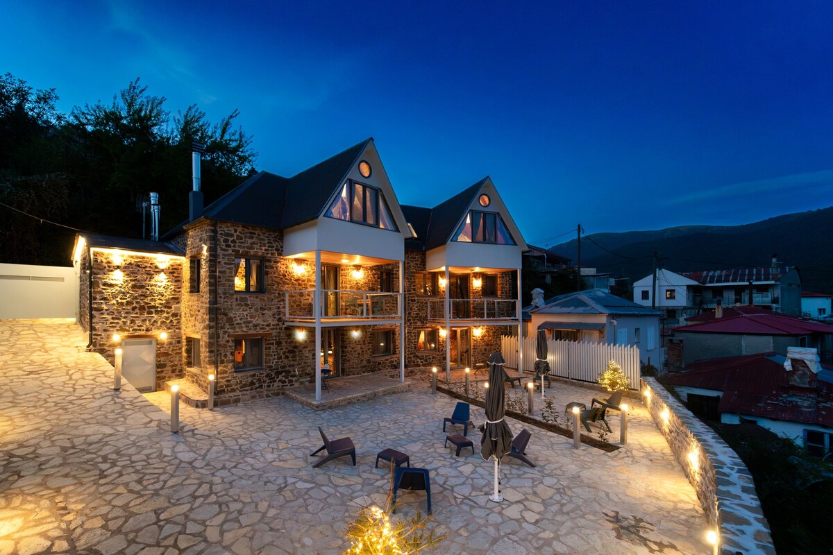 Πετρόχτιστο σαλέ σε ιδιωτικό δενδρόφυτο κτήμα φυσικής ομορφιάς. Άκρως καλαίσθητος εσωτερικός χώρος, φωτεινός, απόλυτα ήσυχος, με σοφίτα, ξενώνα, τζάκι και θέα σε κήπο και βουνό. Φιλοξενεί έως και 8 άτομα (3 υπνοδωμάτια, 3 μπάνια). Stone-built chalet nests in an amazing natural garden. Decorated with a high sense of elegance, sunbathed, quiet, with an attic, a guesthouse, a fireplace and a view towards the private garden and the mountain. It can host up to 8 people (3 bedrooms, 3 bathrooms).