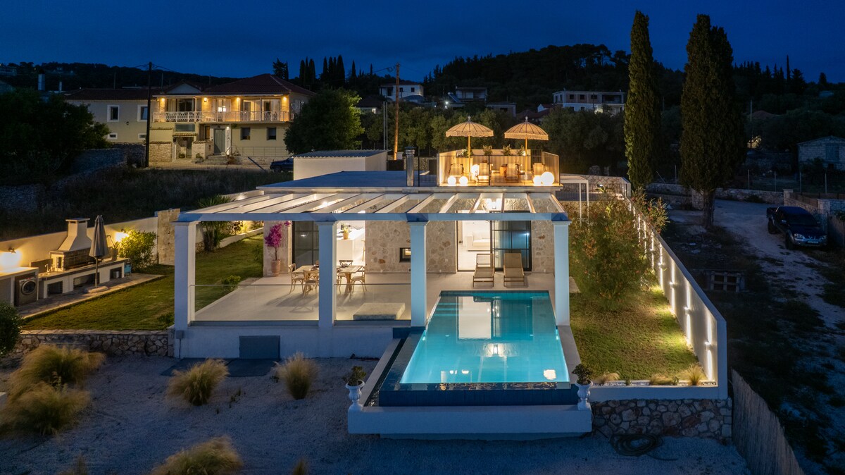 An epitome of modern luxury nestled amidst Laganas' serene olive groves, just a stone's throw from Agios Sostis Beach. This newly built 3-bedroom, 3-bathroom oasis, designed to comfortably accommodate up to 8 guests, seamlessly marries contemporary design with unique handmade woodwork. Revel in the lavishness of your private pool, be enthralled by the blend of nature and elegance, and enjoy top-tier amenities at your fingertips. Here, luxury meets comfort, making it your perfect getaway.