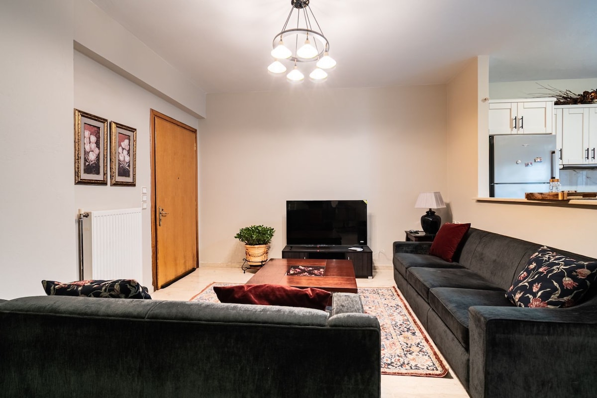 An entire luxury 1st-floor apartment in Zakynthos Island, The apartment consist of a living room, a kitchen with fully electrical appliances, 2xLuxury double bedrooms, a Bathroom, and a terrace balcony on both sides on the apartment. The apartment can host up to 5 people. It is located btw Kalamaki village and Zante town with a 5' drive on each destination. The apartment is new and has been constructed in the winter of 2021 and is fully new furnished.