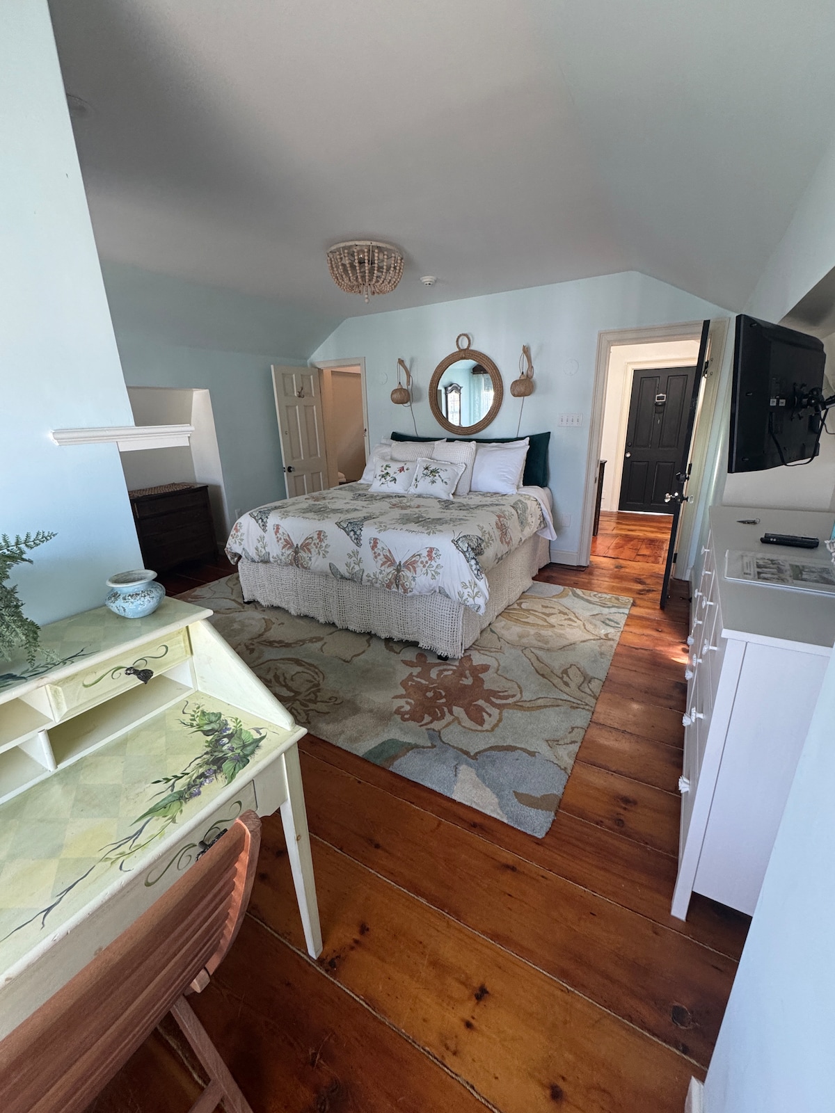 Welcome to The Gables of Rhinebeck, a 4-suite Inn located 1 block from main street. This historic Inn is a fifteen-gable 1860 Gothic Revival Victorian in the heart of Rhinebeck Village. Guests have full access to our half-acre fenced-in yard with perennial and ornamental gardens, + plenty of indoor space. This room, "Blue Ridge" is a 1 BR King Suite About Your Suite: -King Bed on the 1st floor -Full standing shower and jacuzzi tub https://www.TheGablesRhinebeck.com/