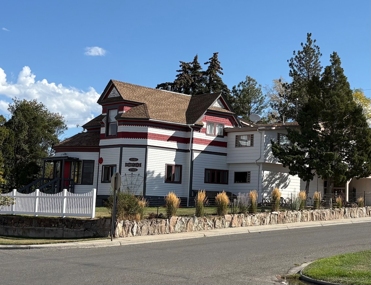 Boutique "Park Hotel Yellowstone" "Beautifully Wild" Restored 1902 Comfort & Convenience. -1 block fr/ Yellowstone Park/River, views & mountains. -Walk to everything in town. Restaurants, coffee, visitor Ctr -All Suites Private w/ Bathrooms -Private shared yard/porch with campfire pit, barbecue grill -Comfy QUEEN beds, kitchens, Free WIFI-Tv cable -Furry animals come visit -Explore entire park from this location -10% off Rafting, Horse, Barbecues, Zip Line